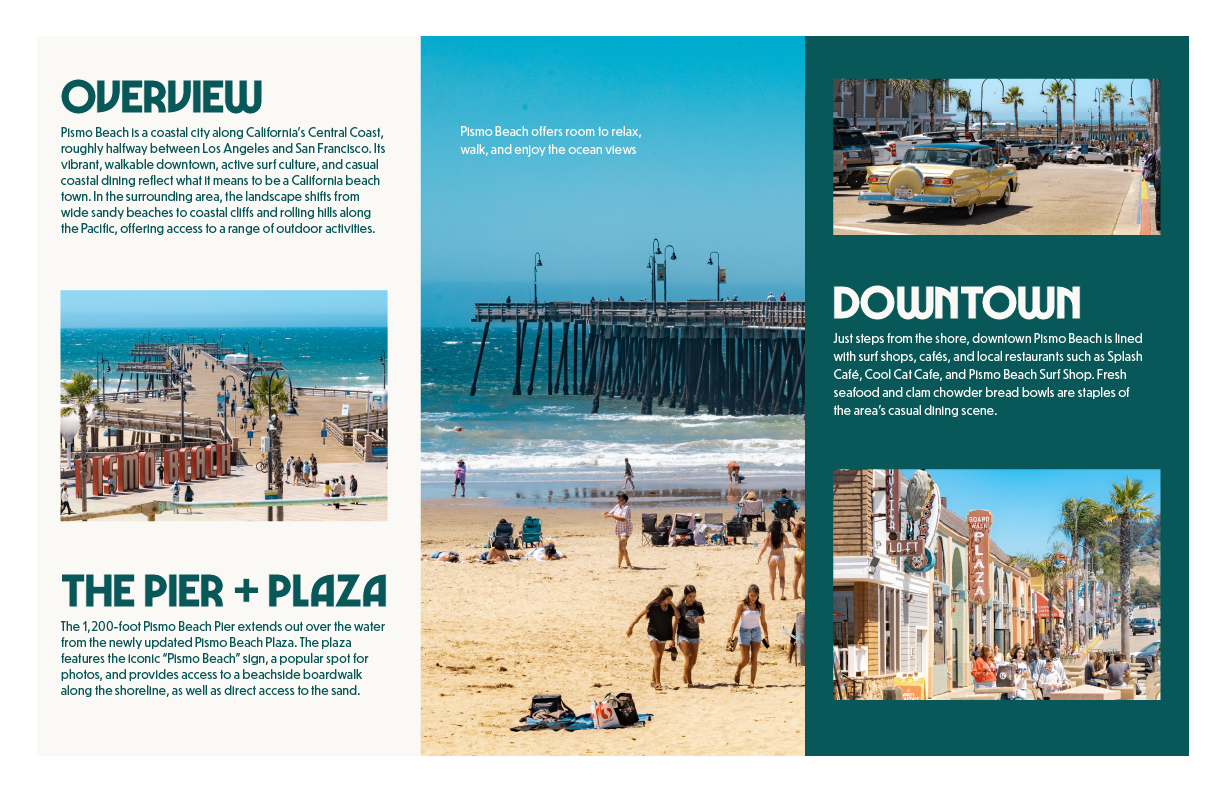 Research and document a place/venue in the San Luis Obispo area and create an informational and promotional campaign targeted towards tourists and local visitors. You will have the opportunity to create all of the content (type/text and imagery) and apply it to various deliverables to provide an engaging and memorable snapshot of the ‘place.’