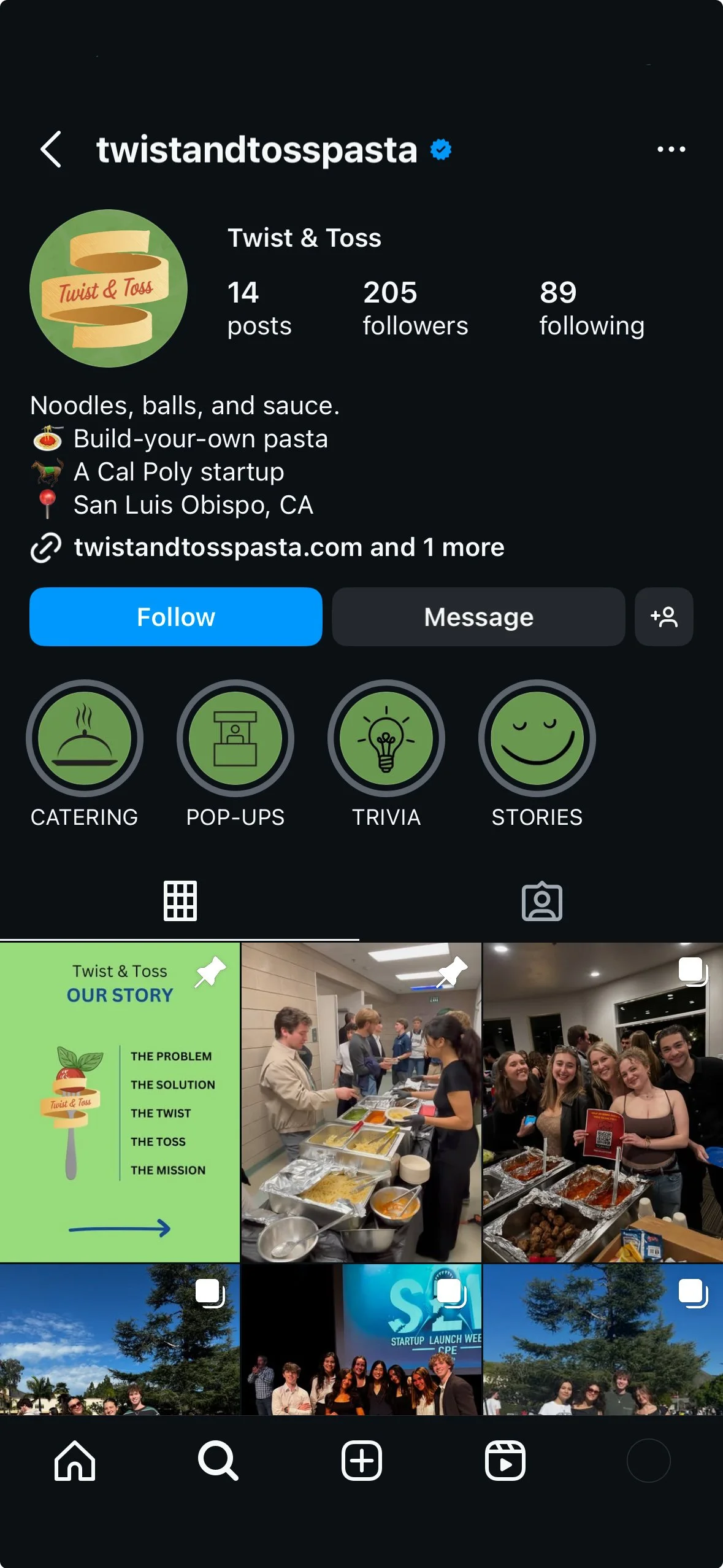 Twist & Toss has one mission: to make good pasta accessible to our students through a build-your-own pasta model. With affordable prices, fresh ingredients, and a college-centered brand, Twist & Toss strives to keep our pasta-loving students well-fed and satisfied through every twist, toss, and bite.